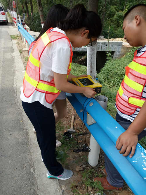深圳某檢測單位正在使用立柱埋深測量儀測量現(xiàn)場