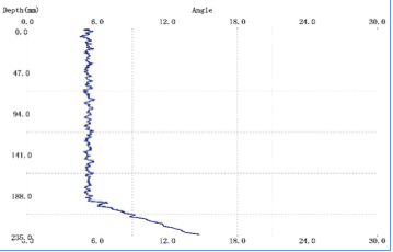 ②當探針伸出到最大長度,探針壓力值和傾角值均無變化,依此判定沉渣厚度大于235.0mm。
