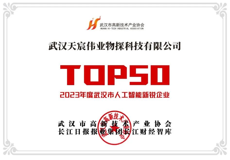 武漢天宸物探榮登“2023年度武漢市人工智能新銳企業(yè)”TOP50強(qiáng)榜單