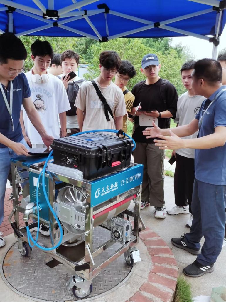 武漢天宸組織了公司技術(shù)人員分組帶領(lǐng)學(xué)生們開展實(shí)踐工作。本次實(shí)踐主要內(nèi)容為超聲成孔成槽質(zhì)量檢測(cè)、聲波透射法基樁檢測(cè)、鉆孔測(cè)斜及低應(yīng)變檢測(cè)原理、方法和實(shí)際操作演練。