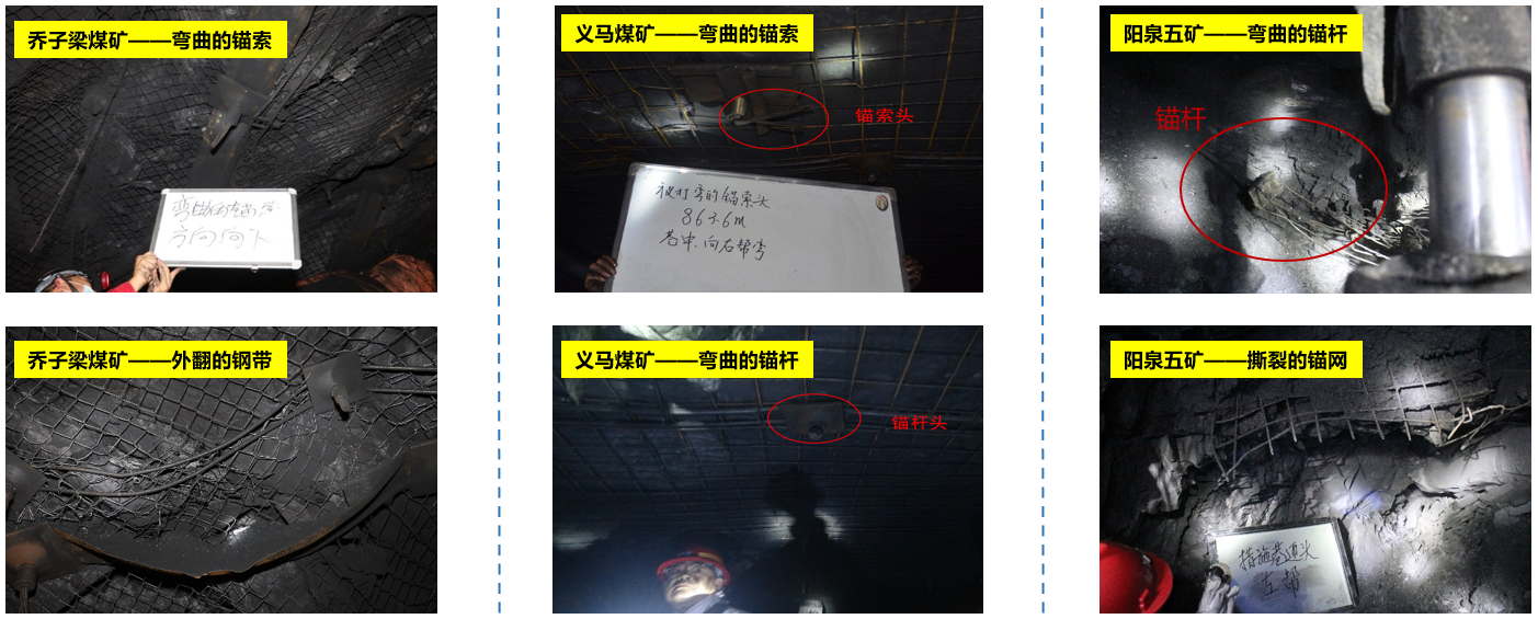 在實施區(qū)域瓦斯治理措施后,雖然未達到消除煤層突出危險性目標,但也在一定程度上降低了應力及煤層瓦斯壓力與含量,使得煤與瓦斯突出動力破壞作用不顯著。突出物以煤為主,除將突出煤體拋出外,突出的動力作用較小,巷道支護及設施較為完好,僅在突出孔洞附近有錨桿和錨索頭部發(fā)生彎曲、錨網(wǎng)撕裂等現(xiàn)象。